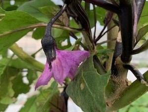 更新剪定を行わずに残した中長ナスは、生長こそゆっくりですが、今も美しい実をつけてくれています。