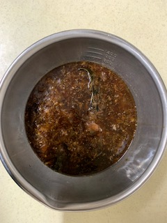 3.翌日、昆布とかつお節を取り除き、みりんを加えて味を調えます。